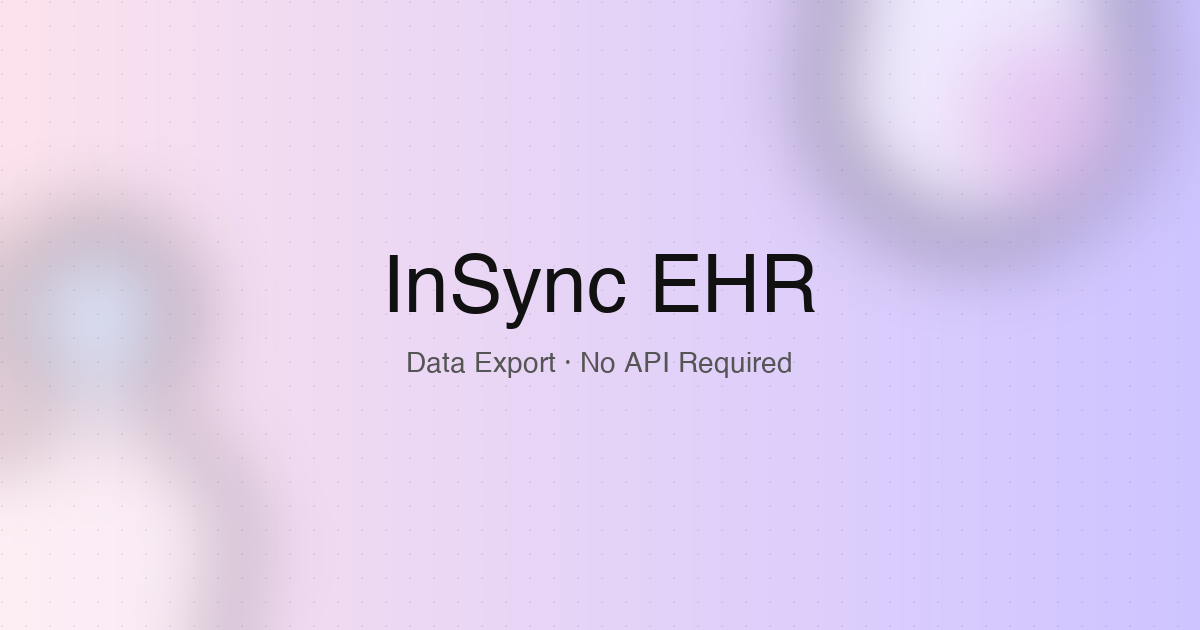 - Limited or No API Access: InSync EHR portal features for custom exports may not be exposed via API for all practices or modules